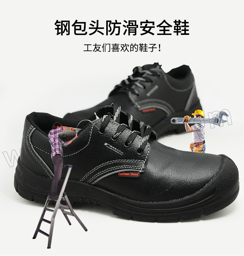 FUNTOWNSHOES/范特仕 劳保鞋 男防砸防滑防静电防刺穿钢包头耐磨安全鞋 6201 黑色