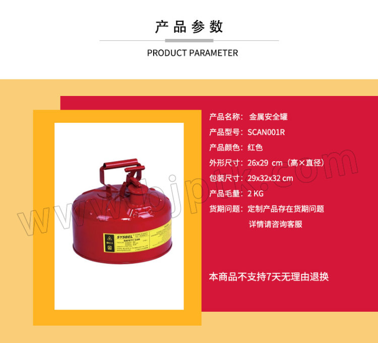 SYSBEL/西斯贝尔 SCAN001R 金属安全罐I型金属安全罐2.5Gal(9.5L)红色 1个装